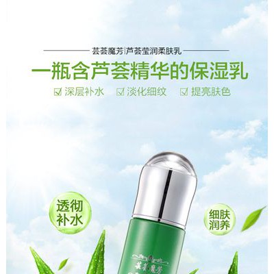 供应芸荟魔芳芦荟莹润柔肤乳,芦荟滋养护肤乳液 产品名称:芦荟莹润柔肤乳产品功效:本产品蕴含芦荟精粹成分,锁水保湿,润泽细腻,舒缓修护,缓解肌肤泛红、干痒、脱皮、疼痛等症状,抵御外界刺激。水漾丝滑之质地,持久保湿滋养肌肤,为肌肤补充水分,改善肌肤干